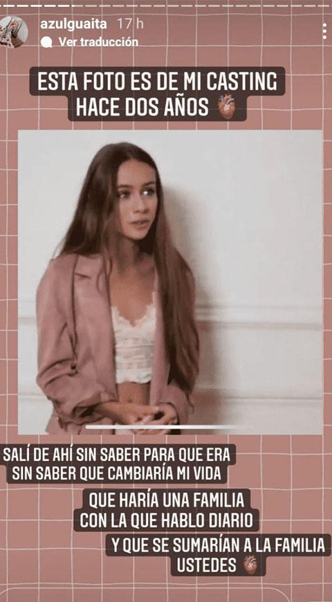 “Esta foto es de mi casting hace dos años. Salí de ahí sin saber para qué era, sin saber que cambiaría mi vida. Que haría una familia con la que hablo diario y que se sumarían a la familia ustedes”, escribió la artista en el post.
