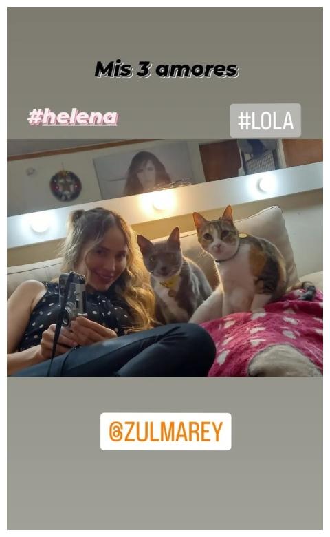 En la captura se pudo ver a la participante de MasterChef y a sus dos gatitas, Helena y Lola. Las tres estaban en el sofá y posaron como todas unas reinas.