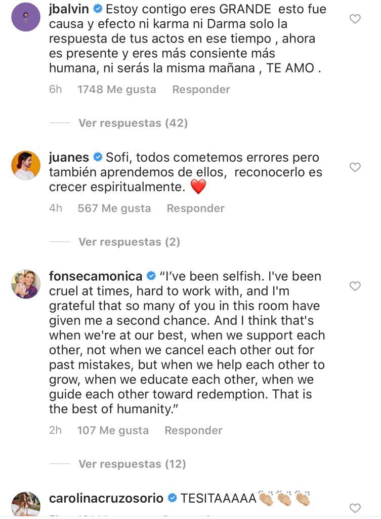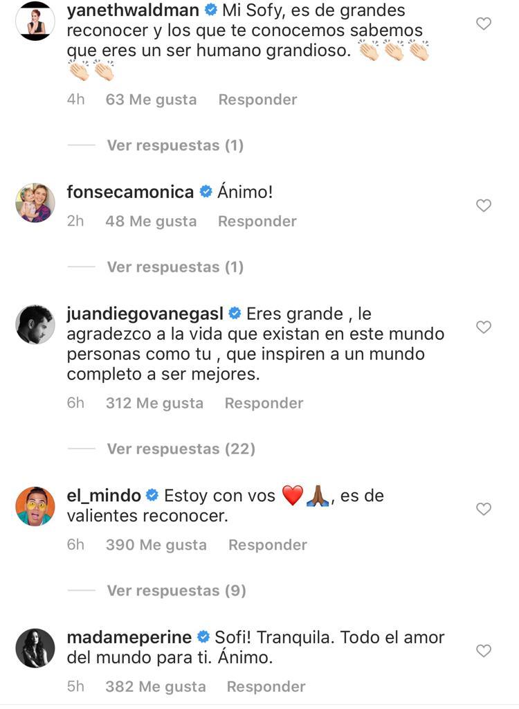 Rápidamente Sofía Gómez recibió el apoyo de varios famososy algunos de sus seguidores, ya que debido a la polémica perdió algunos de sus admiradores.