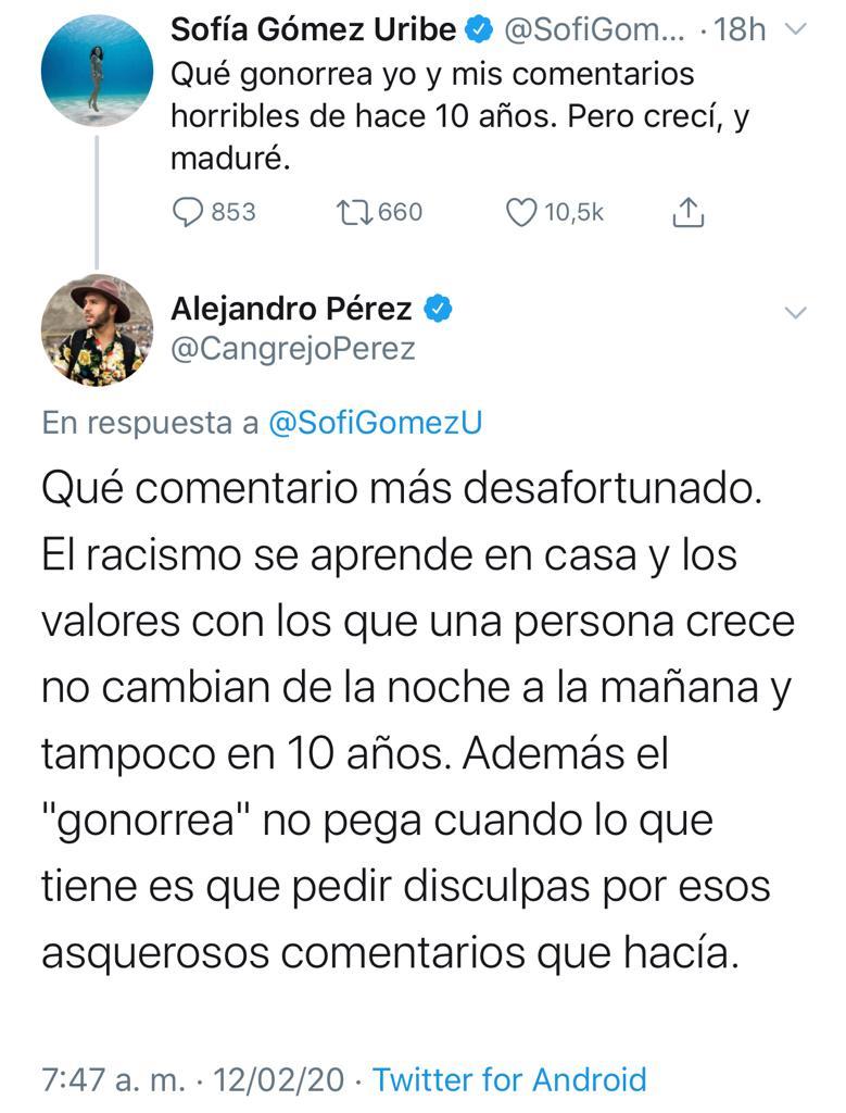 Sofía Gómez pide disculpa por trinos racistas del pasado
