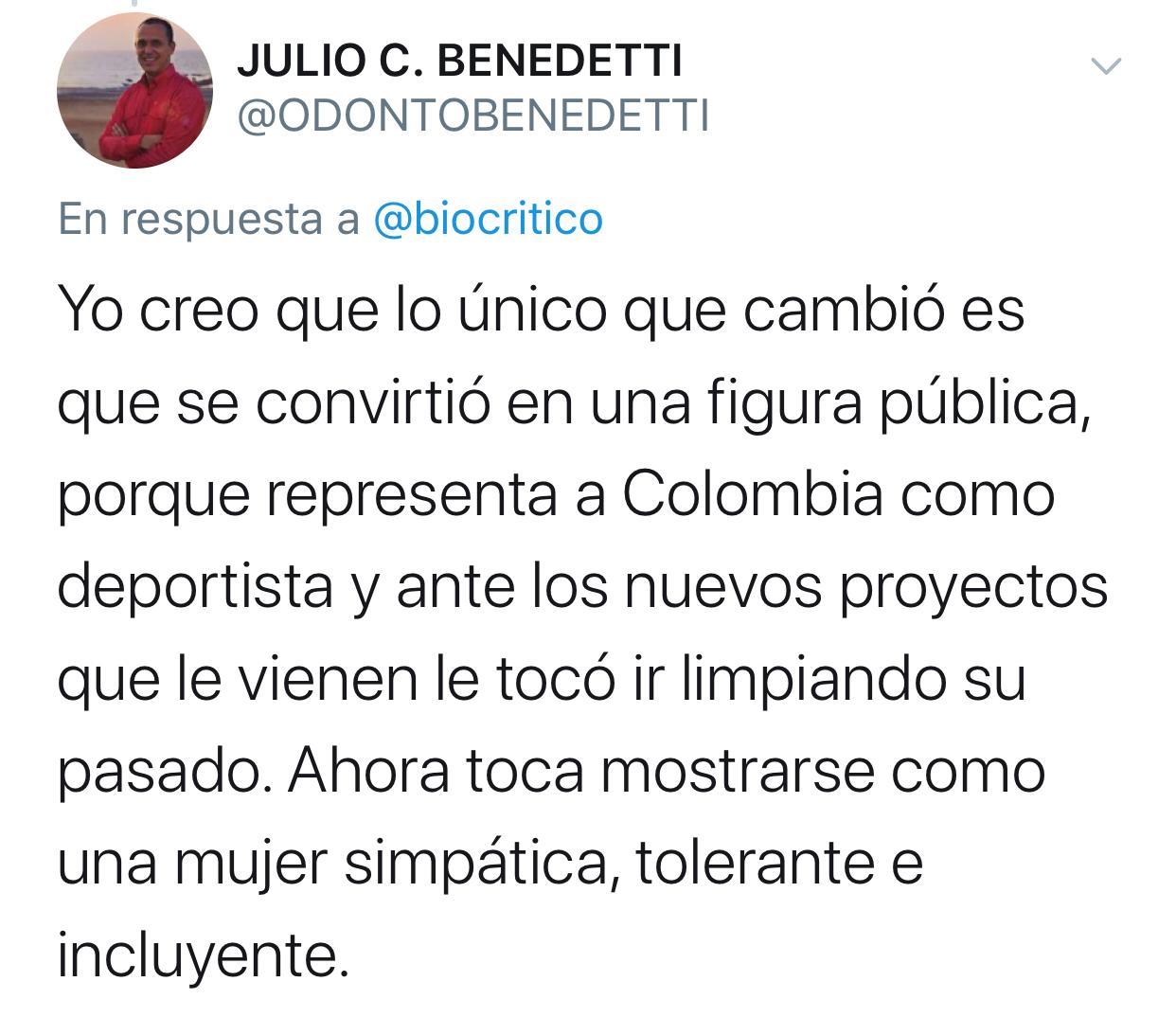 Cabe mencionar que la cuenta de twitter ‘Biocritico’ fue el encargado de difundir el pasado 'oscuro' de la colombiana.