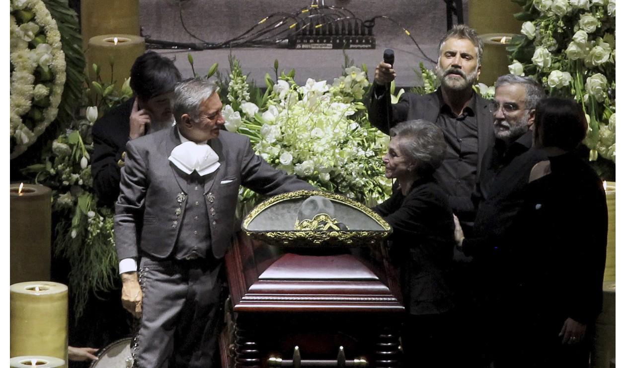 Sin embargo, el hijo del artista mexicano hizo llorar a todos cuando se acercó a su mamá, Doña Cuquita, el amor de su padre, y le cantó la canción mientras ella se limpiaba las lágrimas y tocaba el ataúd.