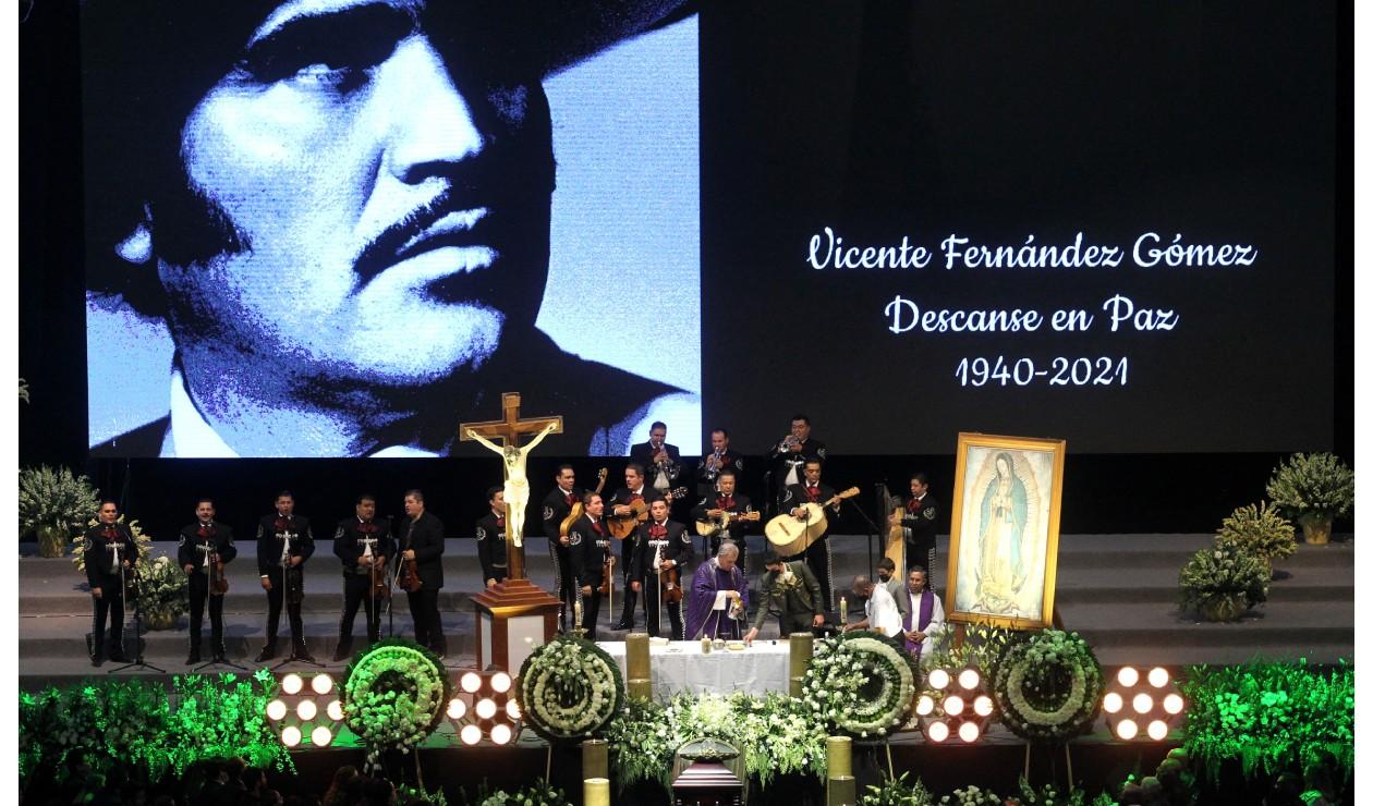 Por:El cantante de música ranchera e ídolo mexicano Vicente Fernández fue despedido el lunes 13 de diciembre en su rancho del occidental estado de Jalisco con una larga misa llena de música y de cariño de su público, que no lo dejó solo ni un momento durante largas filas que hicieron sus fans para darle el último adiós.