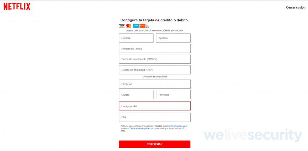 Con este método los delincuentes le hacen creer a la víctima, que la información que aparentemente faltaba en su cuenta de Netflix ya ha sido verificada.