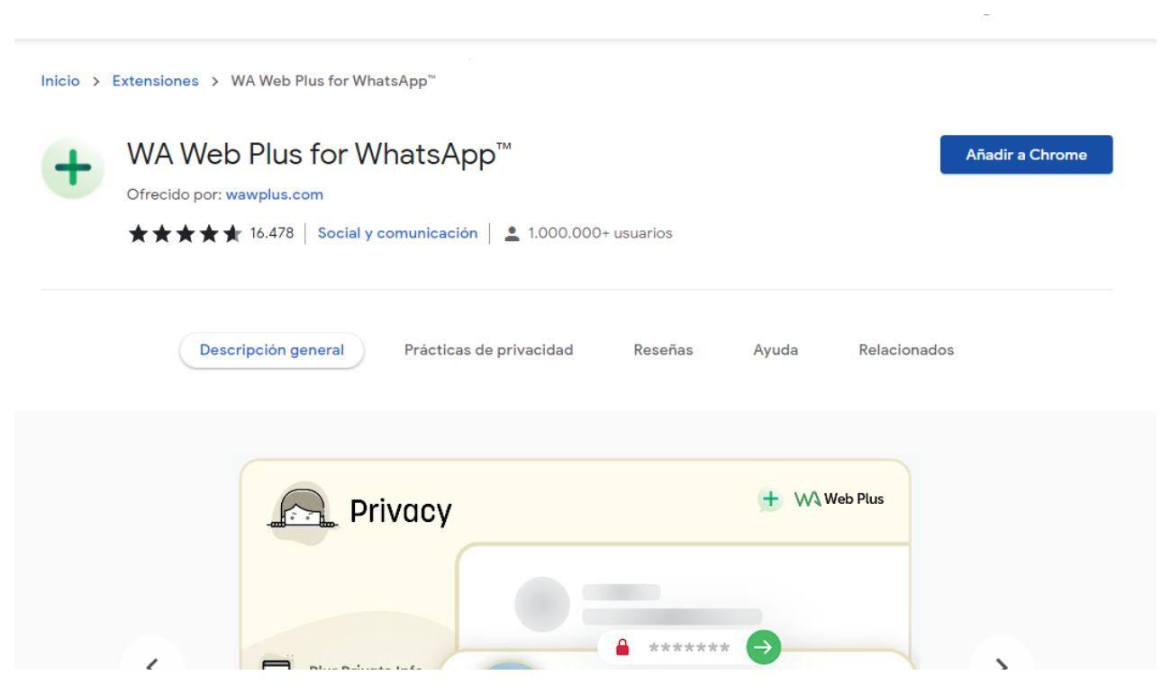 Cuando ya esté allí, deberá darle en ‘añadir a Chrome’ para así obtener el programa que lo ayudará a tapar las conversaciones.