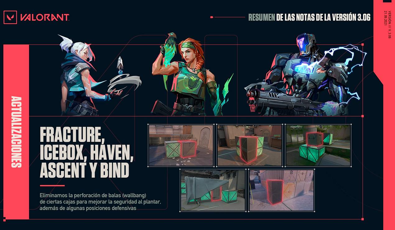 - Los jugadores, además, podrán encontrar cambios en los mapas de HAVEN, ASCENT y BIND. También se corrigió en los mapas los conos de visión y el minimapa de Icebox que debería mostrarse correctamente cerca de la posición B Amarillo.