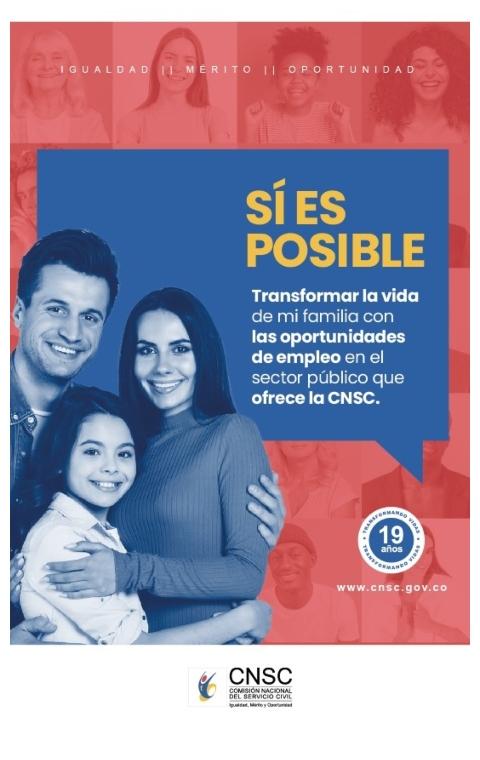 La Comisión Nacional del Servicio Civil – CNSC - es un órgano autónomo creado por la Constitución con el fin de velar por el cumplimiento de los principios de igualdad, mérito y oportunidad para el ascenso de los servidores públicos y el ingreso de los ciudadanos a las entidades del Estado en Colombia. Su misión trasciende las palabras, ya que logra transformar vidas con procesos de selección transparentes en los que se elige a personas integrales.