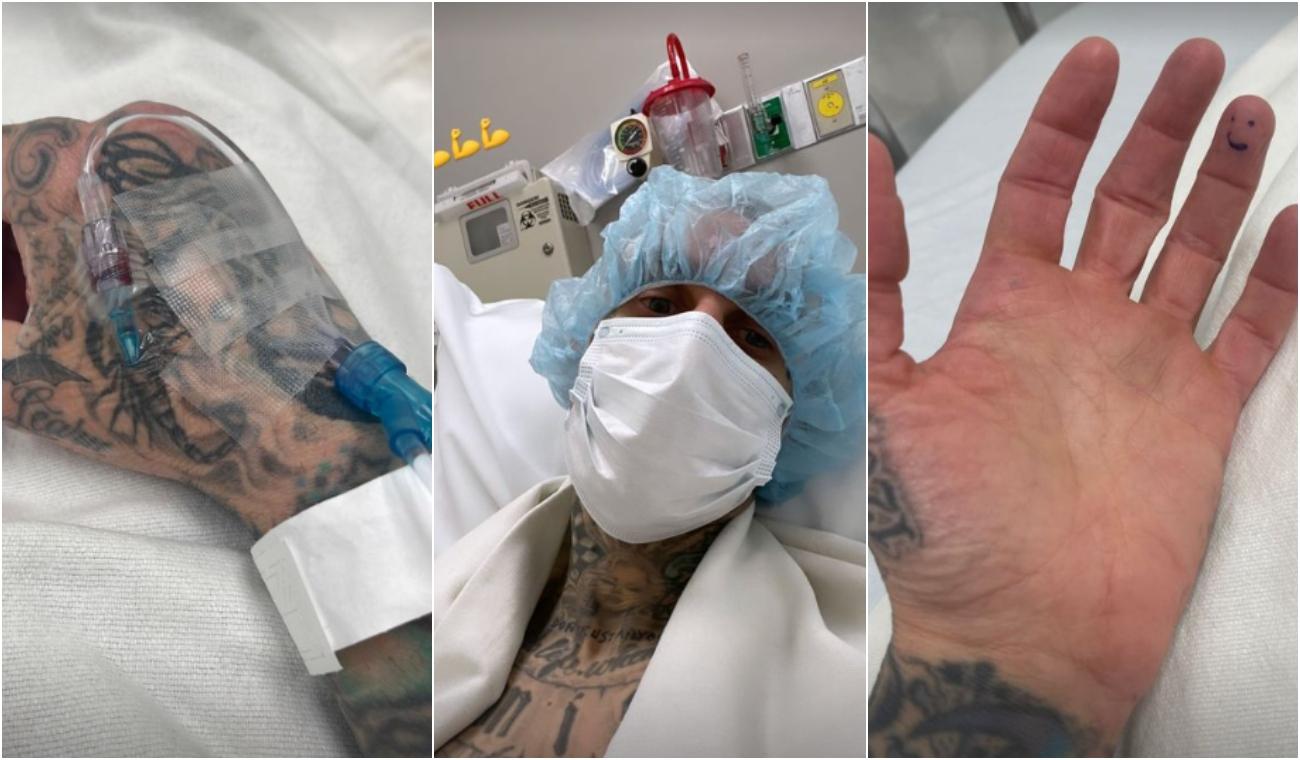 Así lo dejó ver en su cuenta de Instagram, donde mostró el antes y después de la intervención. En sus historias, el músico mostró tres fotografías en las que se ve su mano canalizada, en la siguiente se ve con tapabocas, cofia y una toalla; y, por último, en uno de sus dedos de la mano con una carita feliz.