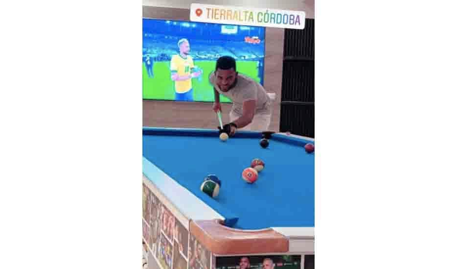 Luego de haber concluido el encuentro y mientras se veía lo doloroso que resultó la pérdida para Neymar, Miguel Ángel Borja se fotografió mientras estaba jugando billar.