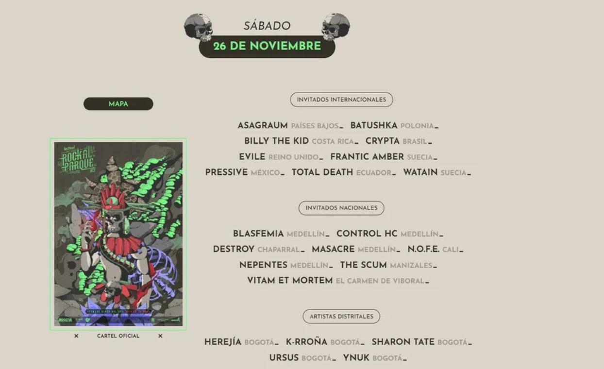 “Desde su primera edición, este evento metropolitano ha sido un lugar perfecto para que cualquier persona experimente de primera mano lo que está pasando con la música en la ciudad, en el país y en el mundo, con agrupaciones que algunas veces representan los sonidos clásicos de los diferentes géneros del rock de sus países y otras son una mirada a la vanguardia”, dice Mauricio Galeano, director de Idartes.