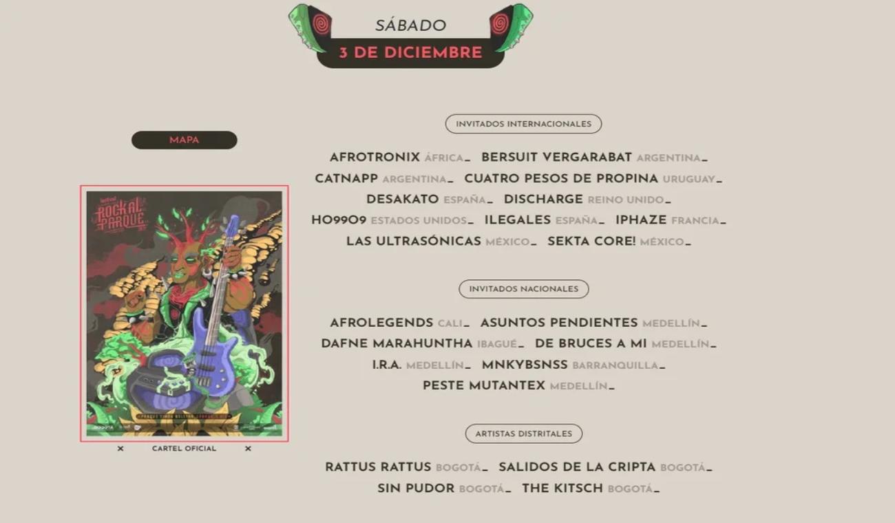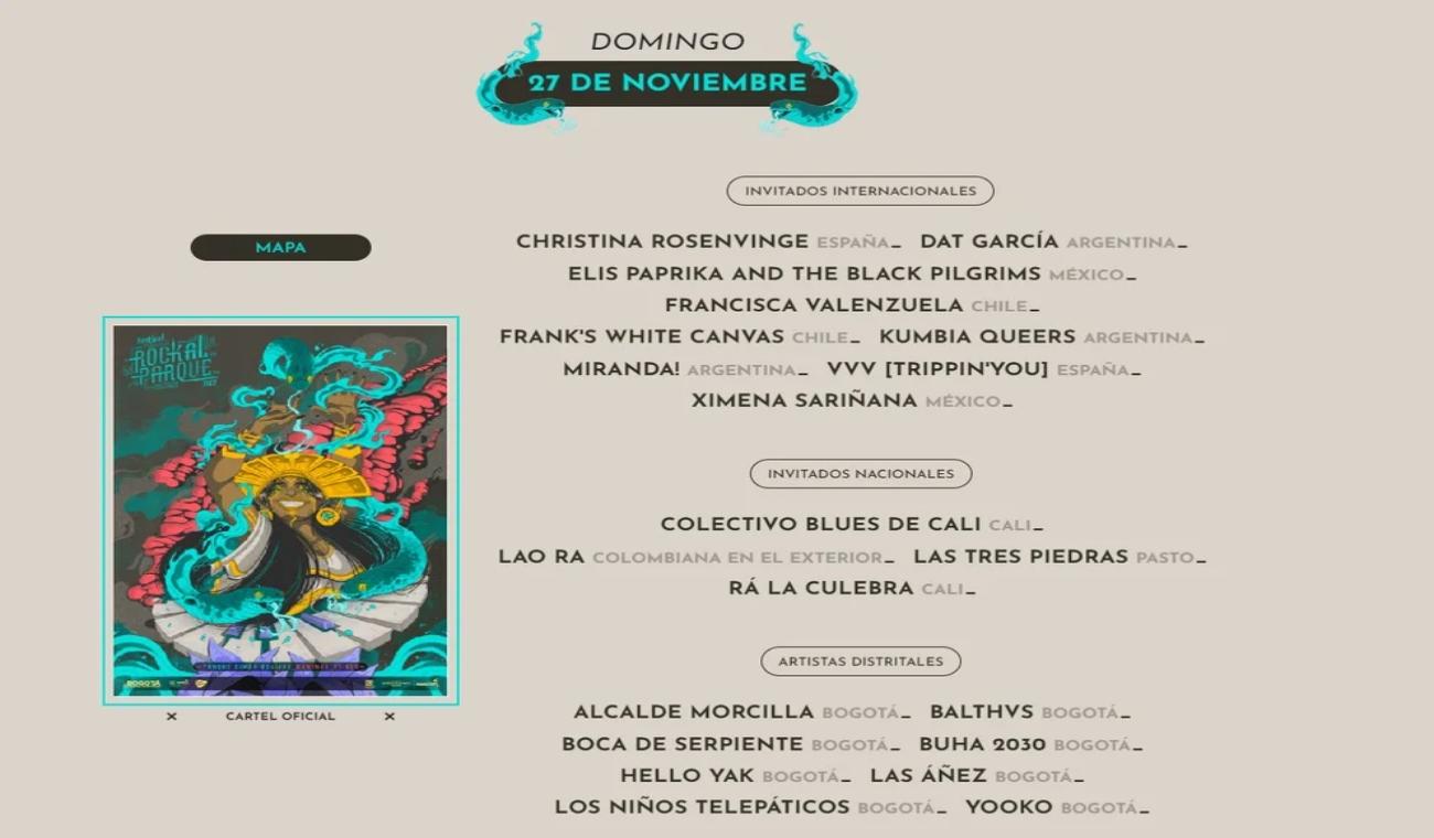 En ese sentido, Idartes confirmó otras 42 nacionales e internacionales que terminan de completar el cartel de Rock al Parque 2022, que para esta edición tendrá una duración de cuatro días y que tendrán como escenario principal el Parque Simón Bolívar los próximos 26 y 27 de noviembre y 3 y 4 de diciembre.