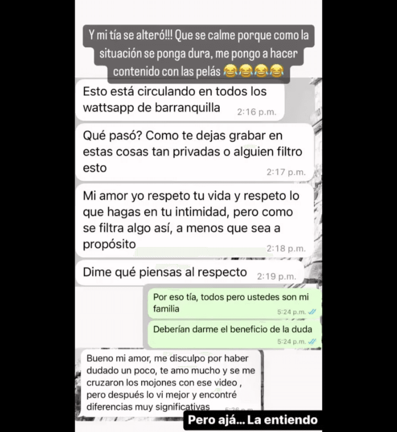 Incluso dejó ver partes de una conversación con su tía, a quien le llegó el video.