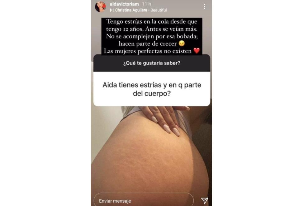 En una fotografía que ella misma divulgó, Aida Victoria mostró las estrías que tiene en sus glúteos.