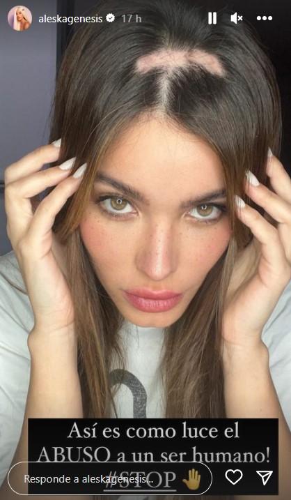 "Esta soy yo actualmente... mi cabello se ha caído, mi salud se ha visto afectada y esto que tengo en mi cabeza me ha jodido el autoestima, (estoy sufriendo de Alopecia) no he podido dormir, he tenido insomnios, dolores, estrés emocional, he recibido terapias de ansiedad y esto comenzó hace 3 meses desde que yo decidí cortar totalmente relación y comunicación con una persona que me hizo daño, me maltrató y violentó durante 5 años y hoy por hoy lo sigue haciendo y no ha tenido nada de compasión conmigo”, indicó.