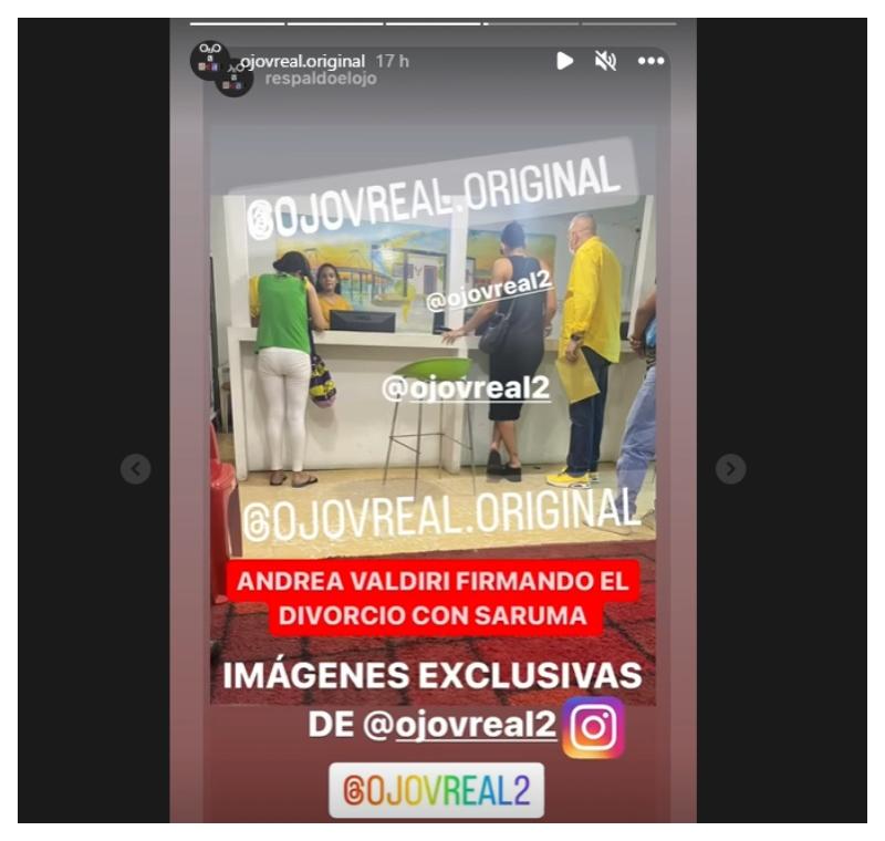 Quienes publicaron esta información, fue la cuenta de Instagram ‘Ojovreal.original'. Ellos aseguran que la persona que se encuentra en dicho lugar firmando el divorcio es Andrea Valdiri.