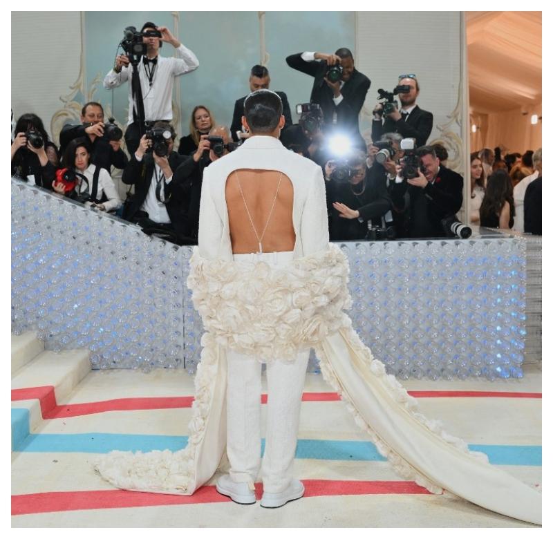 Bad Bunny y su particular traje blanco con abertura en la espalda, en la Met Gala