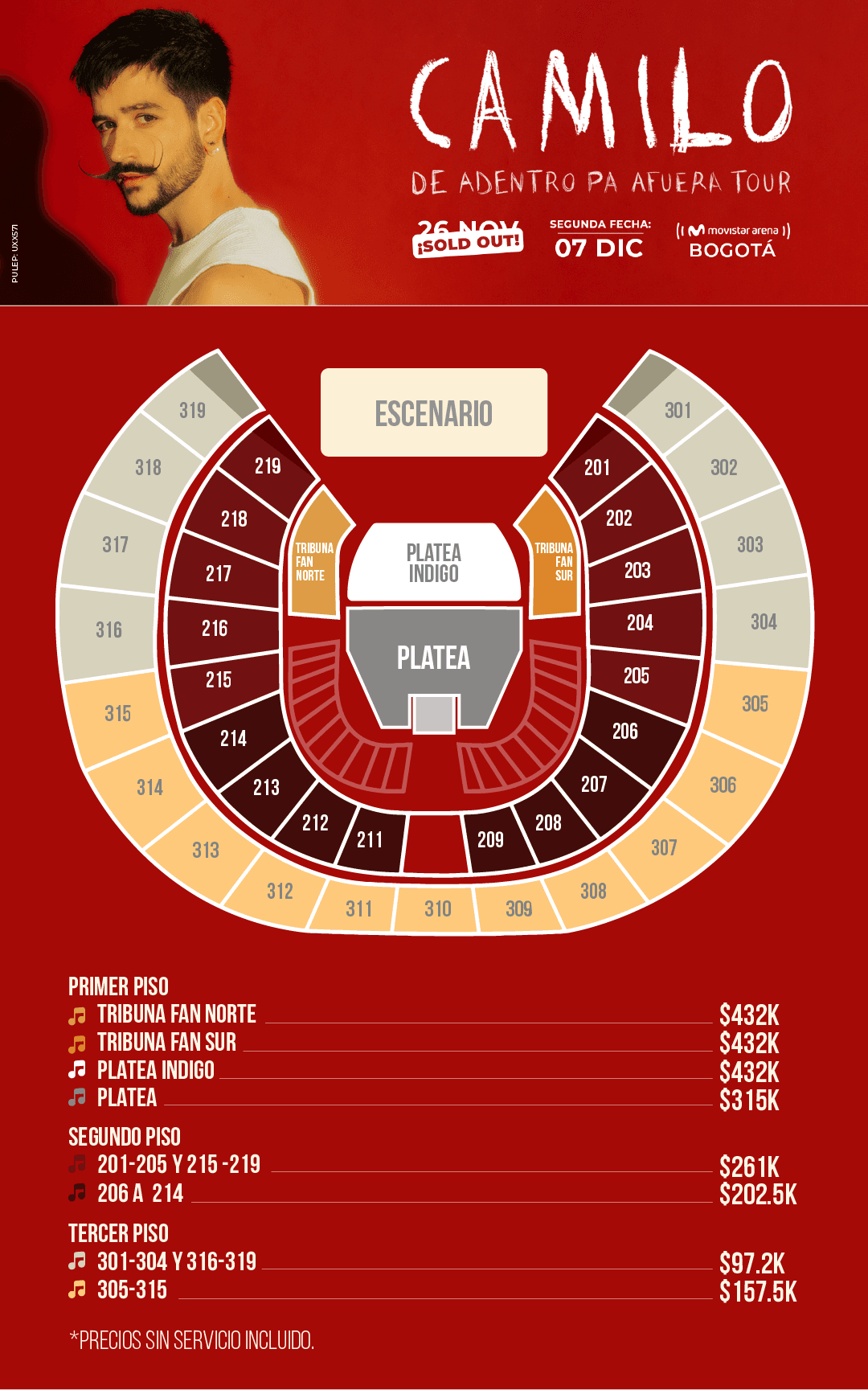 En medio de estas dos presentaciones en Bogotá, Camilo llegará a Medellín y Barranquilla para presentarse el 2 y 3 de diciembre en La Macarena y en Puerta de Oro Centro de Eventos.