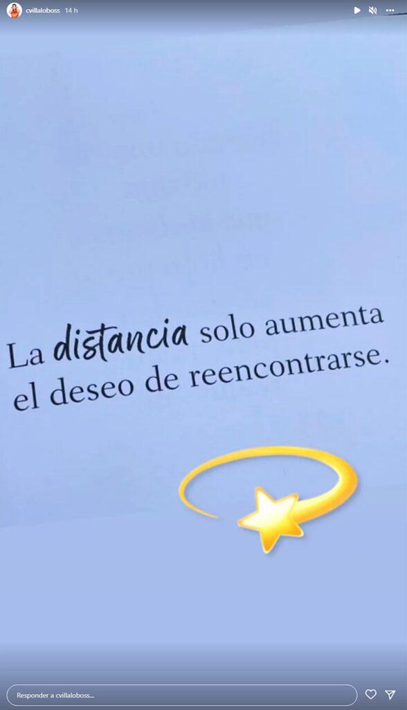 Otra de las pistas que revelarían que los actores estarían empezando un romance, hace referencia a una historia compartida recientemente por Carmen Villalobos, en donde parece estar extrañando a alguien con el que pronto se va a encontrar, cabe resaltar, que HoracioPancheri ya fue eliminado de Top Chef VIP, por lo que se presume la publicación sea para él.