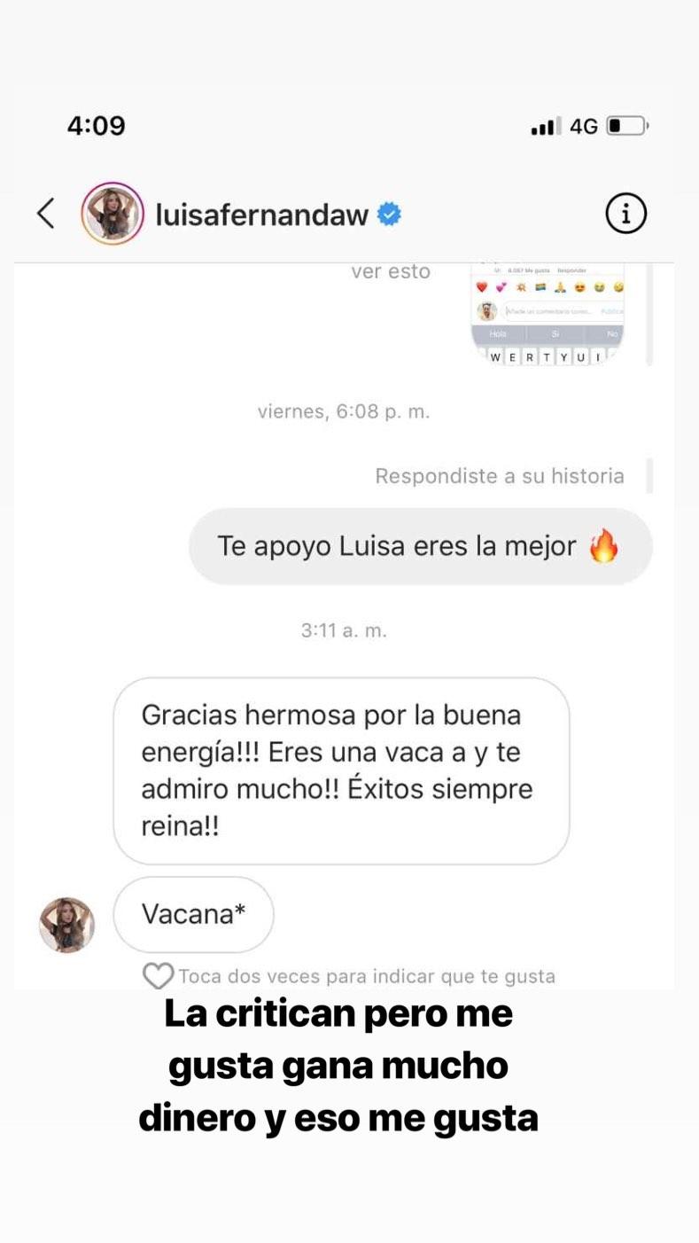 En la conversación se puede ver que 'Epa Colombia' le manifestó todo su apoyo a Luisa Fernanda. Es más, ella llegó a decirle que cree que es "la mejor".
