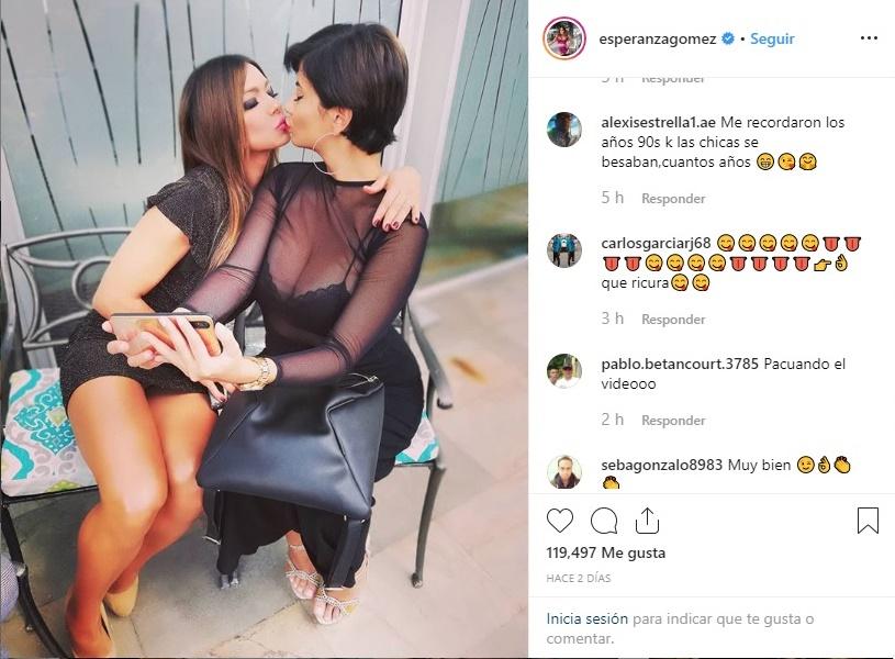 El sensual encuentro entre Esperanza Gómez y Mariana Martix, actriz de cine exótico, también causó sensación en redes, pues las famosas posaron ante la cámara dandose un beso y juntando sus lenguas de manera muy seductora.