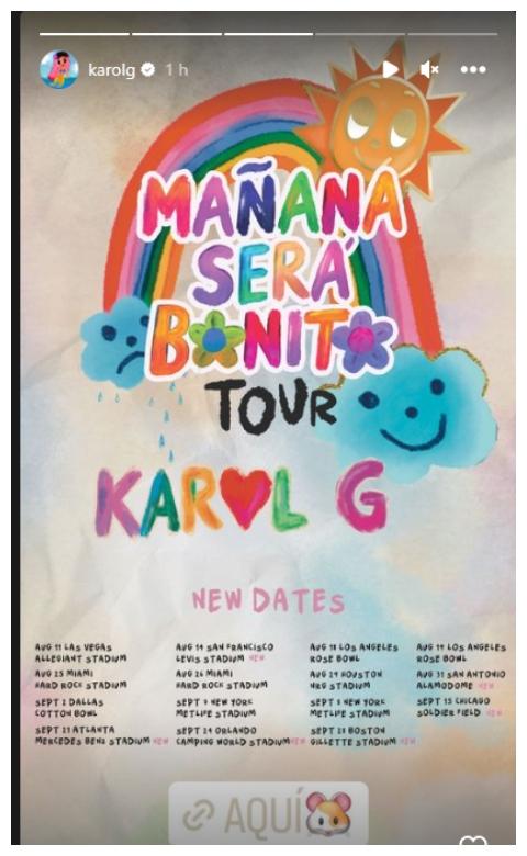 Por:Hace un par de días, Karol G anunció que hará un tour por Estados Unidos se llama 'Mañana será bonito'. Esta noticia se da, luego de que dijera que se iba a retirar de los escenarios, pero dejó sorprendido a varios, luego de que afirmara que se presentará en el país americano. Más de uno quedó muy feliz al escuchar dicha noticia.