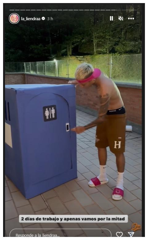 Mostró en sus redes el proceso para construir este disfraz y lo que tuvo que hacer para lograrlo. En redes dejó a muchos sorprendidos al revelar que se disfrazó de baño público. Construyó con sus manos un baño de cartón y para colgárselo, tuvo que amarrar una maleta, para luego colgársela.