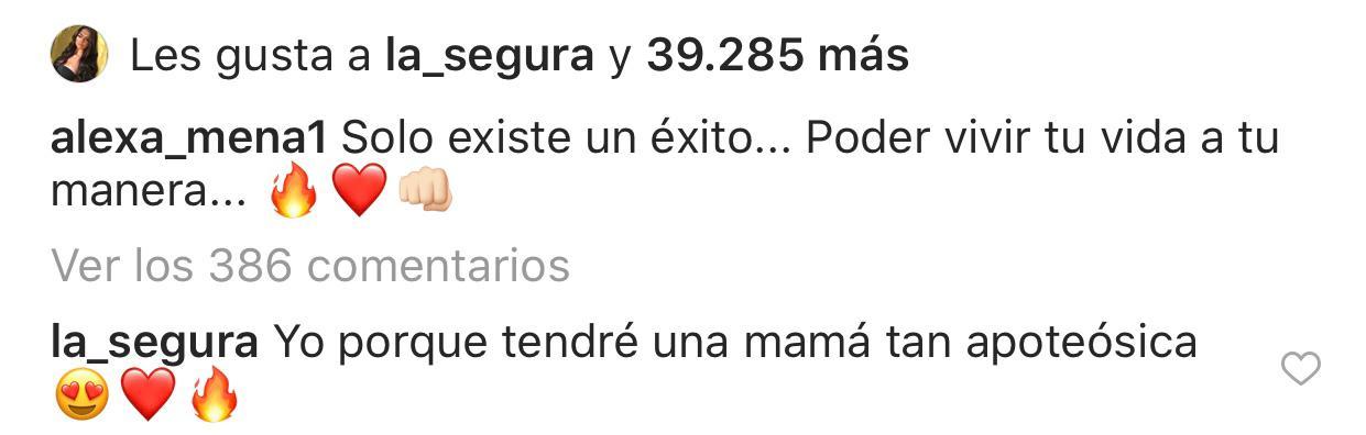 La Segura aprovechó la publicación para recordarle a su mamá lo hermosa que era.
