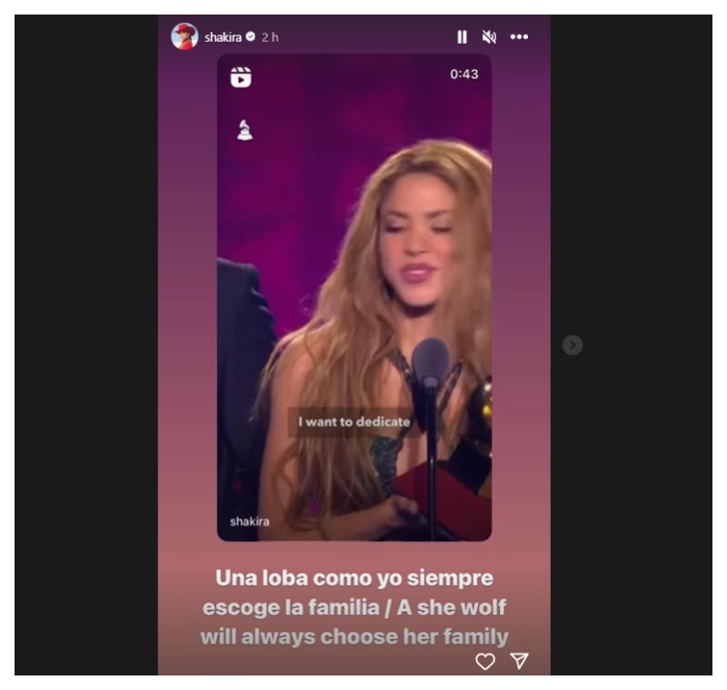 Shakira habría dado la razón, por la que decidió admitir que cometió fraude fiscal. Recientemente, en una publicación que hizo en Instagram, dejó un video de ella recibiendo un premio en los Grammy Latino.