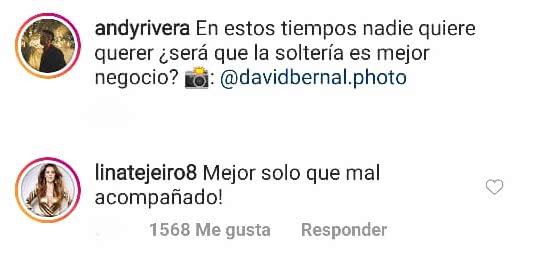 La expareja suele comentar sus publicaciones, pero esta vez Lina no fue tan sutil.