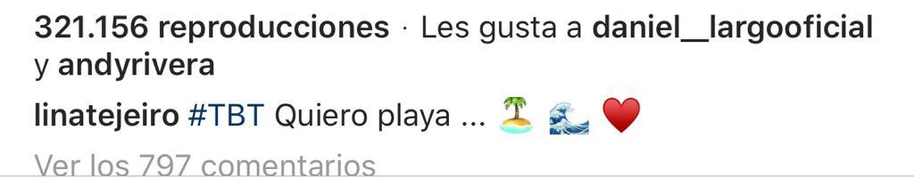“¿Esto es lo del ‘flechito’ Andy? mucho man tan afortunado”, “Subiendo cositas de Cancún”, “Andy Riviera papi mire a ver si la lleva y hacen publico eso amor nuevamente”, “El Andy grabando eso todo emocionado”, “Andy grabo ese video”, “El #tbt de Cancún”, “Subiendo los tbt en Cancún cuando la cogieron con andy hace unas semanas en el aeropuerto jajajajaj”, fueron algunos de los comentarios que recibió la modelo en su publicación.