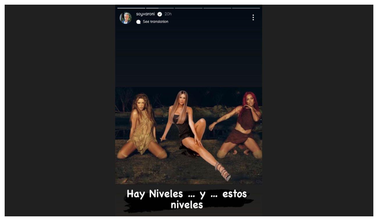 Por medio de sus historias quiso hacer una especie de montaje, en donde, coloca a su pareja en el medio de la foto que tienen la barranquillera y la paisa. Hay que destacar que esta fotografía se utilizó para anunciar su nueva canción TQG "Te Quedé Grande".