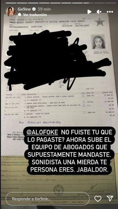El productor discográfico Alofoke se pronunció sobre la situación, revelando detalles de los hechos y afirmando trabajar en la liberación de Yailin bajo fianza. Explicó la complejidad del conflicto, alegando que se trata de una disputa entre la pareja en la que Tekashi eliminó videos incriminatorios de él hacia Yailin y retuvo aquellos que lo exculpaban.