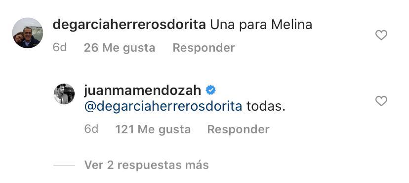 Melina Ramírez se convirtió en tendencia en las redes sociales luego de que sus seguidores no pasaran por alto los coquetos mensajes que se deja con el actor Juan Manuel Mendoza, con quien hace un par de meses confirmó que se estaría dando una nueva oportunidad en el amor.