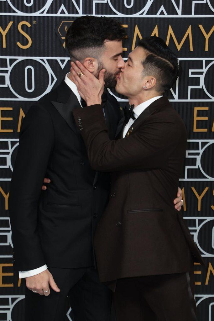 Joel Kim Booster ilumina la alfombra roja de los Emmy con un beso apasionado que demuestra que el amor siempre es la mejor tendencia.