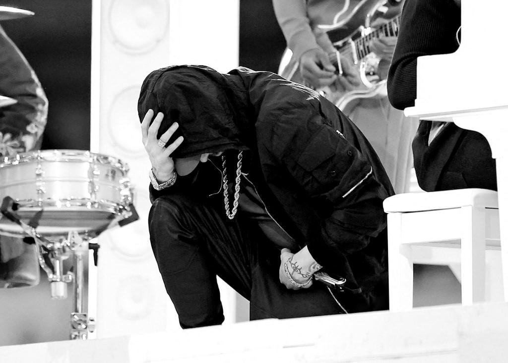 Cuando empezó a sonar la melodía, Eminem puso su rodilla izquierda en el suelo, agachó la cabeza y se la tocó con la mano derecha, mientras sostenía el micrófono con la otra. Este gesto haría alusión a la protesta que se llevó a cabo tiempo atrás con Colin Kaepernick, jugador americano, que en 2016 se arrodilló mientras sonaba el himno nacional de Estados Unidos.