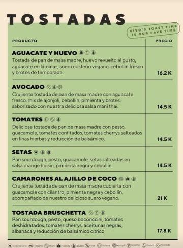 Por ejemplo, el shot de vitalidad está compuesto por extracto de naranja, piña, zanahoria, también aparece la cúrcuma como ingrediente acompañado de panela y pimienta negra. Este tipo de bebidas tiene un costo de 5.400 pesos.