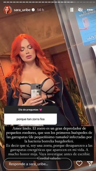 Ante tal ofensa, Sara no dudó en responderle al internauta, no obstante, en esta ocasión no fue grosera, sino fue quizás más inteligente que su "contrincante", ya que resaltó las cualidades y habilidades de los zorros, pues según ella, es un honor ser dicho animal, por lo que invitó a la persona que había hecho el comentario a investigar un poco más antes de hablar.