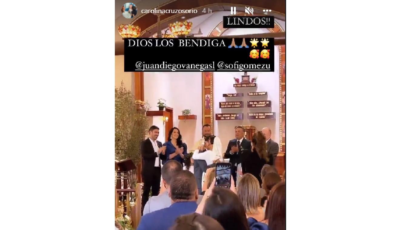 "Celebrando el AMOR REAL, EL AMOR BUENO. Gracias Sofía Gómez y Juan Diego Vanegas por mostrarnos que cuando se quiere siempre es posible", escribió Carolina Cruz junto a la foto del matrimonio.