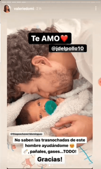 La pareja dedicó un par de publicaciones para aclarar el tema y Valerie empezó diciendo: “Quiero aprovechar para aclarar una cosita. Hace un par de noches subí esta foto”. La imagen que dice: “Te amo. No saben las trasnochadas de este hombre ayudándome. Pañales, gases TODO. ¡Gracias!”