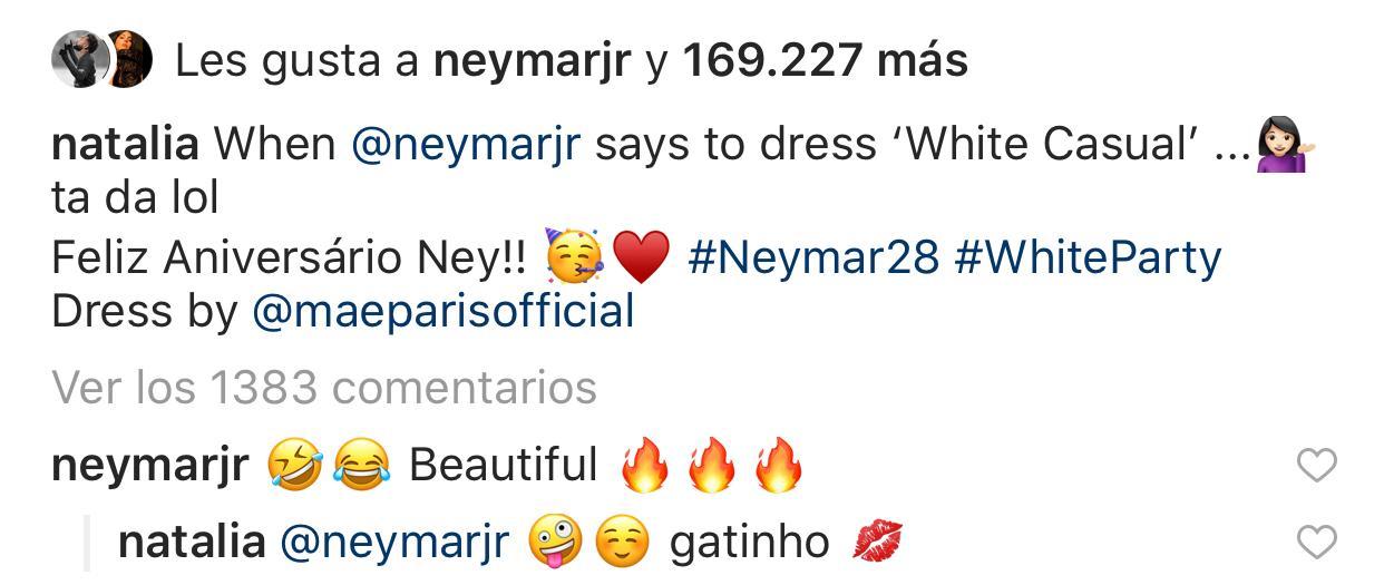 “Cuando Neymar dice que uses un vestido blanco casual… Feliz cumpleaños Ney”, escribió en su cuenta.