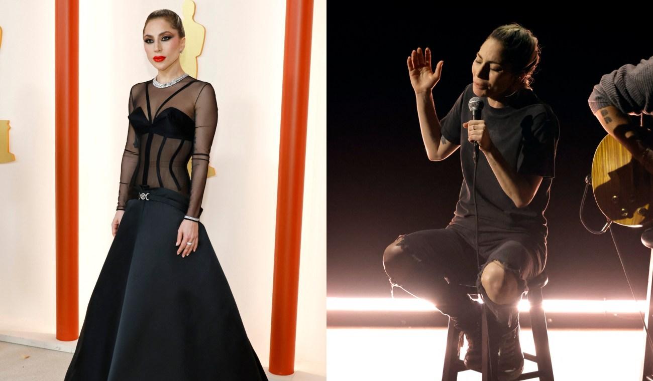 Por:Lady Gaga acaba de demostrar que es una de las artistas pop más importantes y versátiles del siglo. La cantante llegó a la alfombra champán de los Premios Óscar 2023 con un espectacular vestido Versace, y cuando salió al escenario tenía un atuendo completamente diferente: camiseta negra, jean negro con rotos en las rodillas y tenis, sin maquillaje.