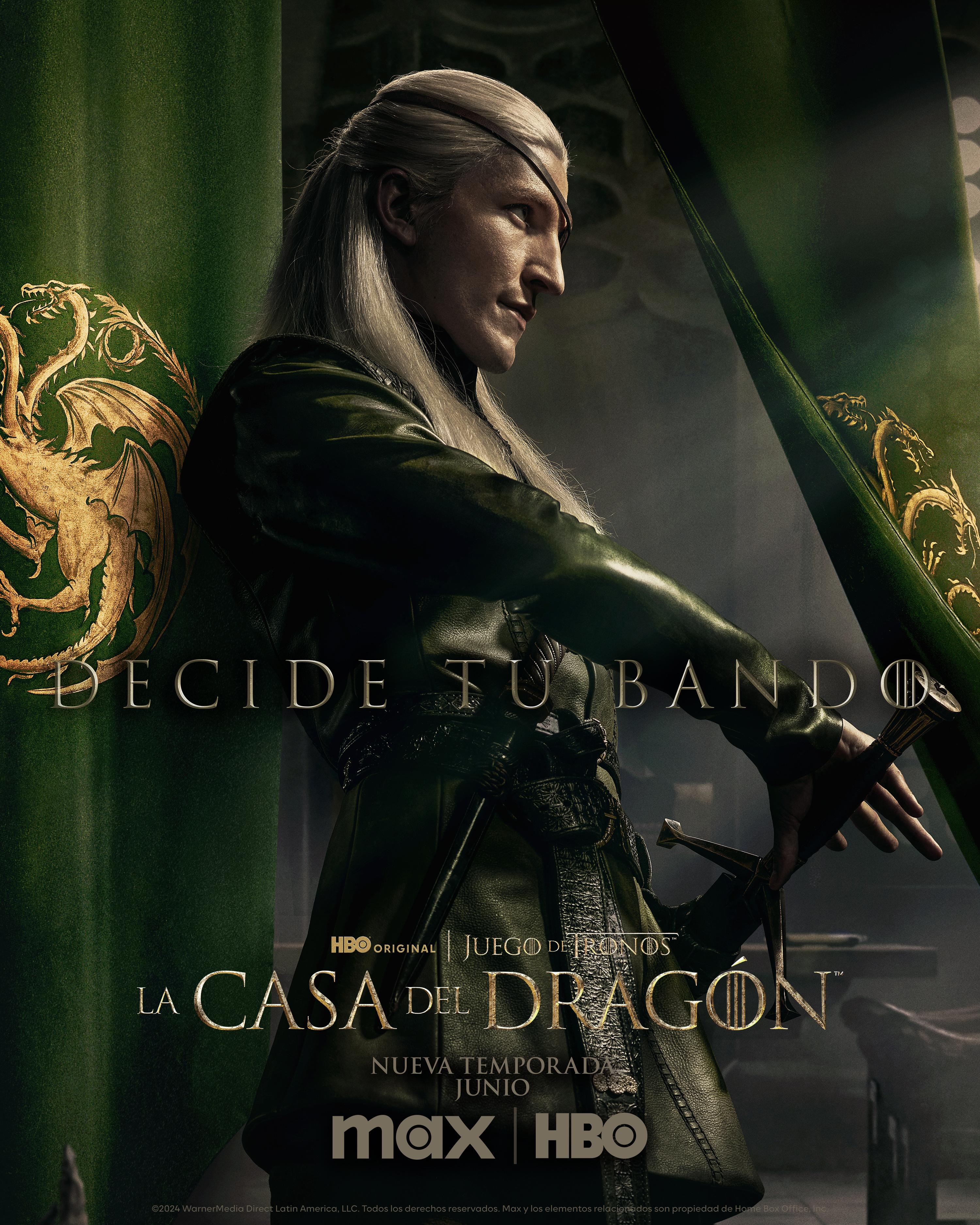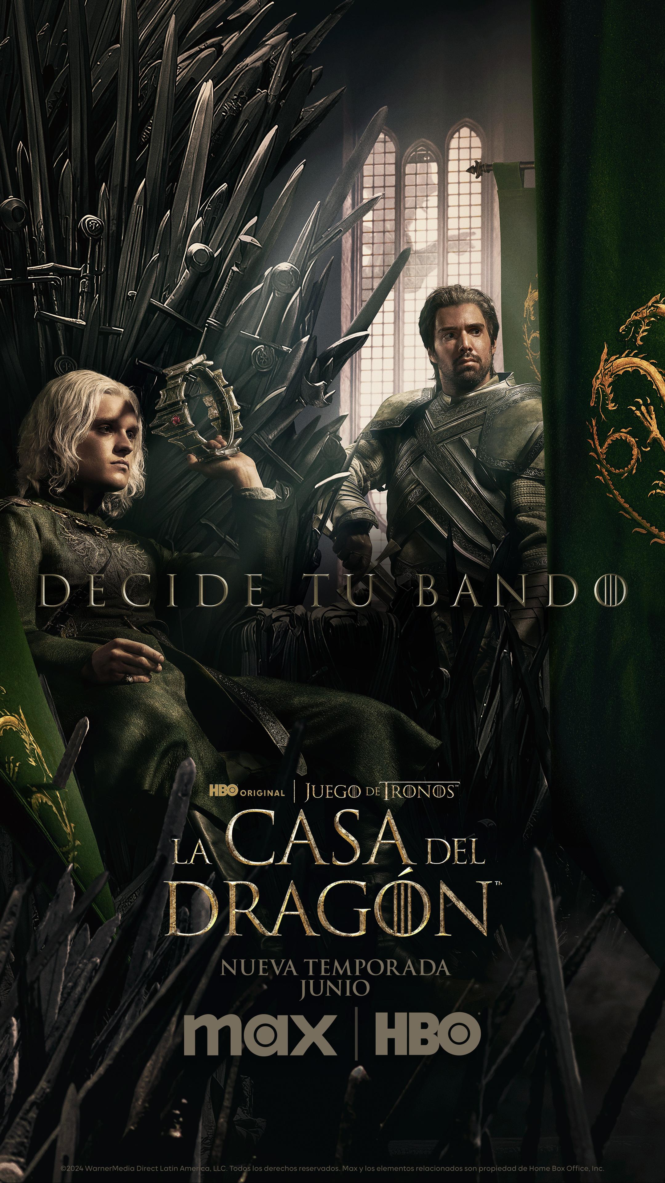 Los posters presentan a los personajes clave de la nueva temporada, incluidos 'Alicent Hightower' (interpretada por Olivia Cooke), 'Rhaenyra Targaryen' (Emma D’Arcy), 'Daemon Targaryen' (Matt Smith), 'Rhaenys Targaryen' (Eve Best), 'Corlys Velaryon' (Steve Toussaint), 'Aemond Targaryen' (Ewan Mitchell), 'Aegon Targaryen' (Tom Glynn-Carney) y 'Criston Cole' (Fabien Frankel). Los fanáticos pueden elegir su bando favorito con los hashtags #ConsejoVerde o #ConsejoNegro, refiriéndose a los diferentes consejos que rodean el poder en la serie.