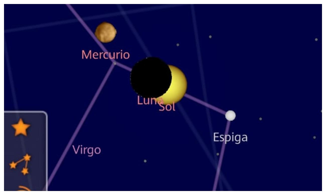 Con dicha aplicación se pudo ver el primer momento de la luna interponiéndose al sol. Estos dos están entre Mercurio y Marte, más de uno está esperando que se oscurezca para ver este fenómeno esperado.