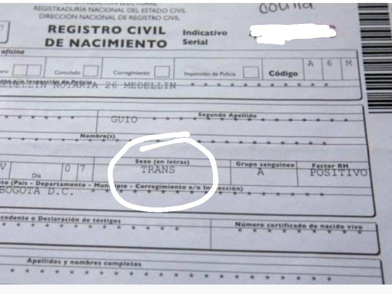 Por:Después de dos años de trámites, el Tribunal Administrativo de Antioquia tuteló los derechos de Mike Durán y ordenó la corrección del componente sexo de su registro civil, en el cual aparece la palabra trans, siendo la primera persona en el país con una letra diferente a ‘M’ de masculino o ‘F’ de femenino.