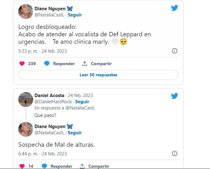 En redes sociales se ha viralizado la versión de una mujer que asegura haber atendido al vocalista de Def Leppard, además, reveló que el cantante habría presentado fuertes dificultades asociadas a la altitud de la ciudad.