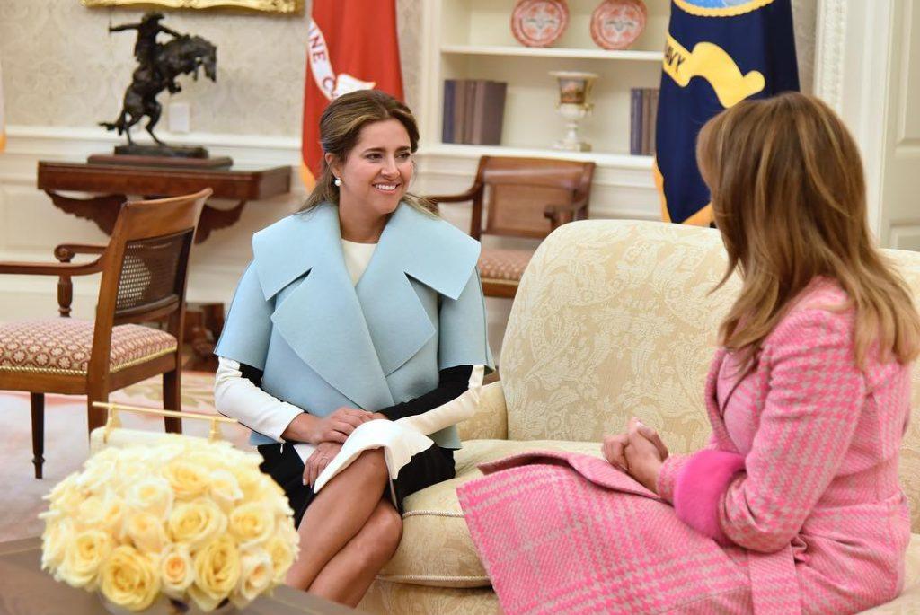 Sin duda el momento más comentado en redes sociales fue cuando la primera dama visitó la Casa Blanca, en Washington (EE.UU.). Utilizando un traje de la firma colombiana Leal Daccarett, María Juliana se convirtió en blanco de críticas, al emplear un diseño que sirvió para hacer cientos de memes en redes sociales.