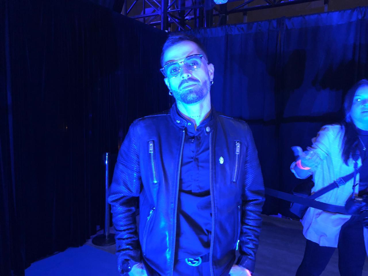 A su paso por la "alfombra neón", con la que abrió el evento al que asistieron artistas, celebridades e influenciadores, el colombiano apareció con un vestido completamente de blanco, luciendo el pelo rubio y con un tatuaje con el número 11 en alusión a su nuevo disco.