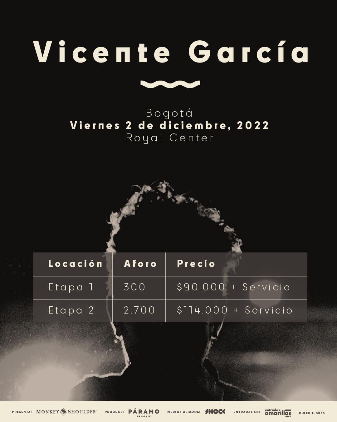 Vicente García se presentará el dos de diciembre en el Royal Center de Bogotá.