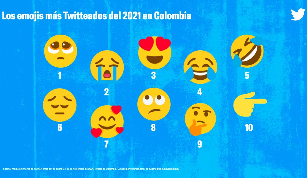 Los usuarios de Twitter en Colombia emplean los emojis para expresar con más contundencia una idea, de hecho el emoticón de carita triste lidera el ranking de los emojis más utilizados en la plataforma.