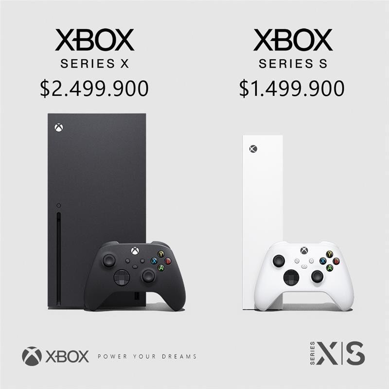 Por su parte, la Xbox series S costará $1.499.900 con imagen QHD a 120 fps, 4.2 Teraflops, 7 GB RAM, 512 GB de almacenamiento y un tamaño inferior de color blanco exclusivo para esta consola de bajo costo que no tendrá unidad de CD y sus juegos serán descargados únicamente.